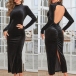 Elegant Mock neck Long Sleeve Back Slit Backless Bodycon Velvet Dress