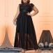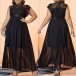 Elegant Mock Neck Sleeveless Lace Spliced Chiffon Plus-size Dress