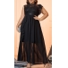 This sophisticated and glamorous dress features a the mock neck, the sleeveless construction, the lace bodice spliced with a chiffon fabric skirt. Is it your style?