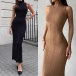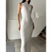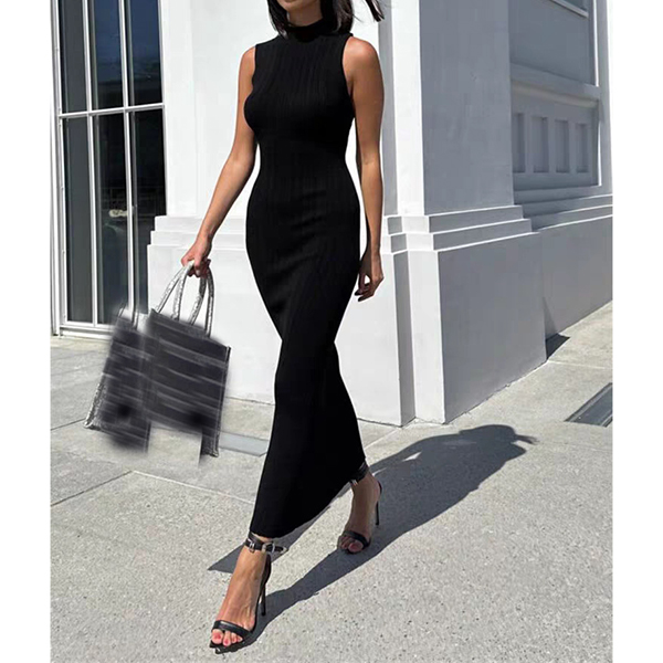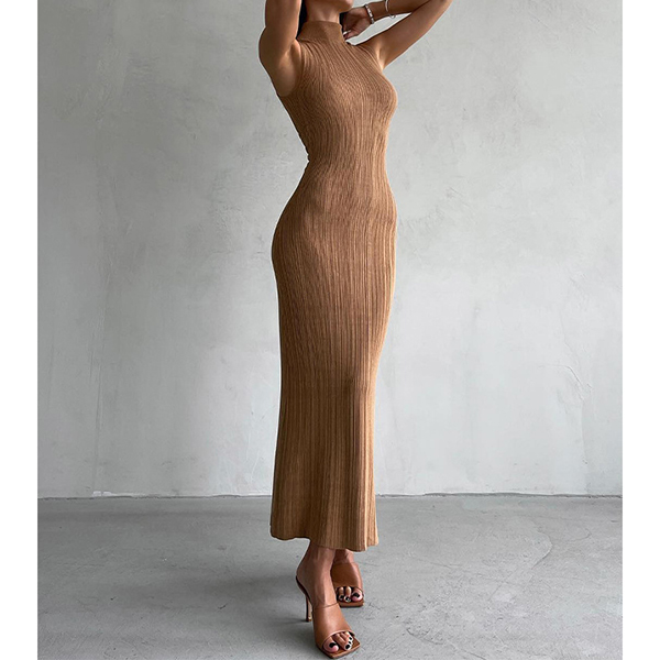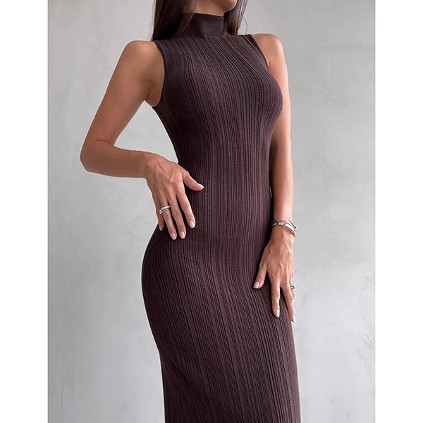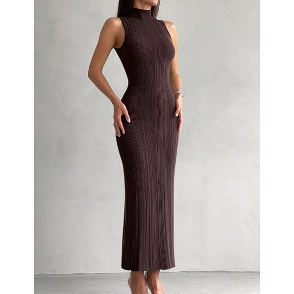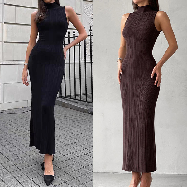 Elegant Mock Neck Sleeveless Ribbed Bodycon Dress