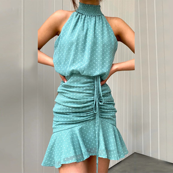 Elegant Mock Neck Sleeveless Ruched Ruffled Hemline Bodycon Dress