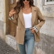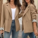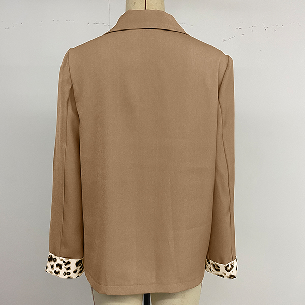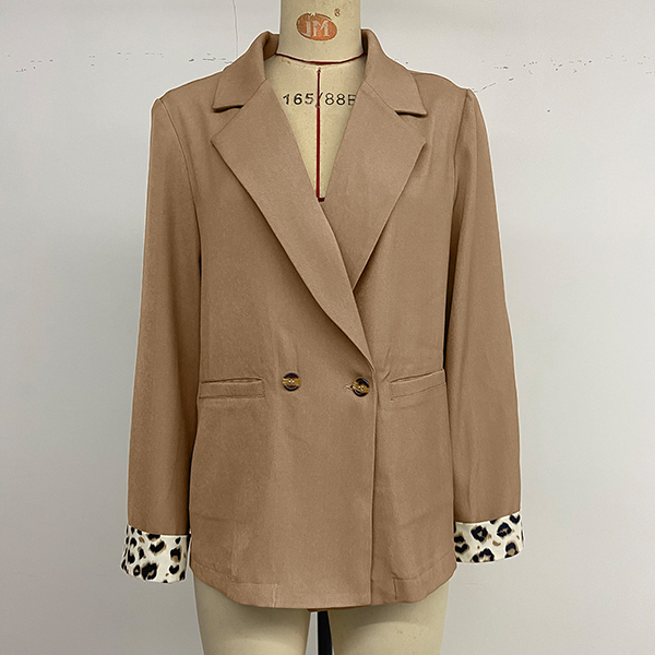 Elegant Notch Lapel Long Sleeve Leopard Print Cuff Double-breasted Blazer