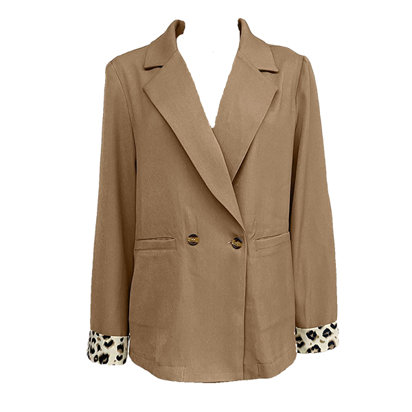 This Double-breasted Blazer is a sophisticated and stylish piece that combines classic tailoring with a touch of boldness. The notch lapel design adds a formal and polished look to the blazer, creating a structured and tailored silhouette. The double-breasted style adds a chic and elegant touch, offering a timeless and sophisticated aesthetic. The leopard print cuffs add a playful and trendy element to the blazer, creating a statement-making detail that adds personality and flair to the outfit. Wanna have a try?