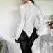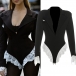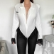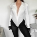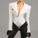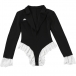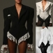 Make a bold and sophisticated statement with this Blazer Bodysuit. This stunning bodysuit features a classic notch lapel design that adds a touch of elegance and style. The puff long sleeves and lace spliced detailing create a unique and chic look that is perfect for a special occasion or night out. Pair it with high-waisted pants or a skirt for a polished ensemble~