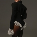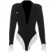 Elegant Notch Lapel Puff Long Sleeve Lace Spliced Blazer Bodysuit