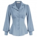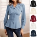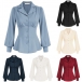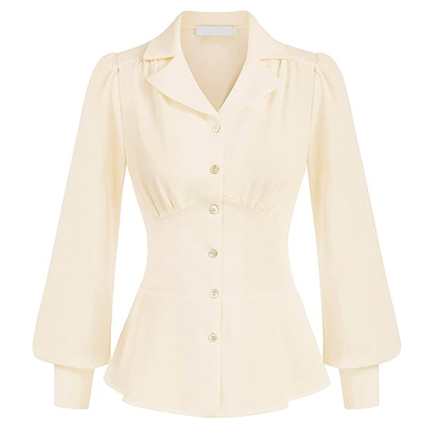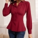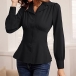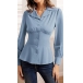Elegant Notch Lapel V-neck Long Sleeve Gathered Waist Button Shirt
