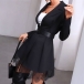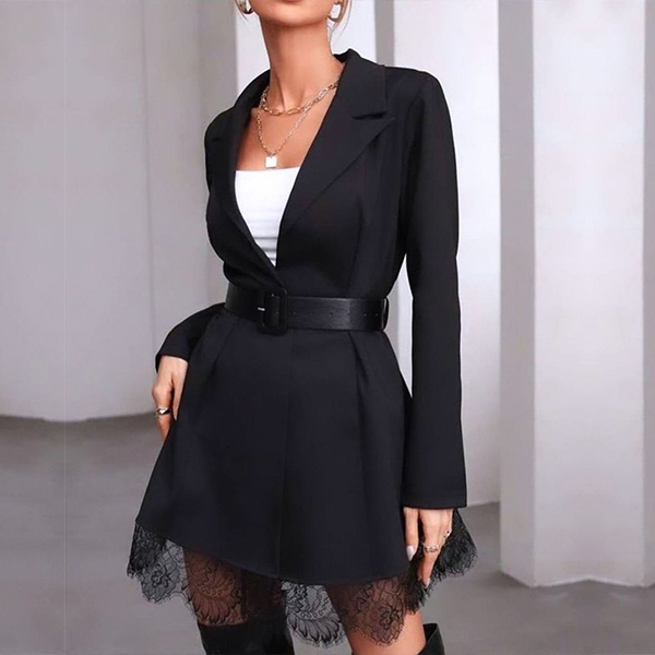 Elegant Notch Laple V-neck Long Sleeve Lace Spliced Suit Dress with Belt