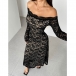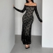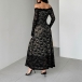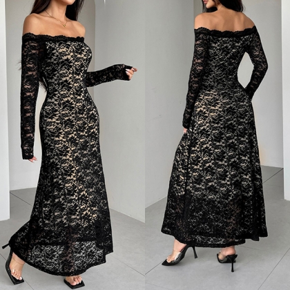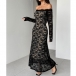 Embrace breathtaking elegance with this exquisite maxi dress that epitomizes sophisticated romance for your most special occasions. The graceful off-the-shoulder neckline creates a timelessly feminine silhouette that flatters while showcasing beautiful décolletage, perfectly balanced by long sleeves that add coverage and refined elegance. The intricate floral jacquard lace creates stunning textural depth and visual artistry, with delicate patterns that catch light beautifully and add luxurious dimension to every movement. Pair it with delicate jewelry and elegant heels to complete the look, or add a wrap for outdoor events.