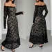 Elegant Off-the-shoulder Long Sleeve Floral Jacquard Lace Maxi Party Dress