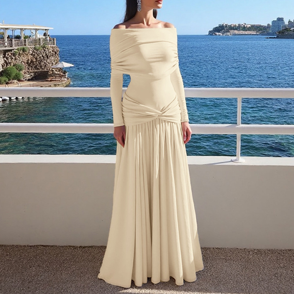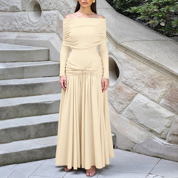 Elegant Off-the-shoulder Long Sleeve Ruched Maxi Dress