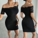 Elegant Off-the-shoulder Short Sleeve Lace Dress