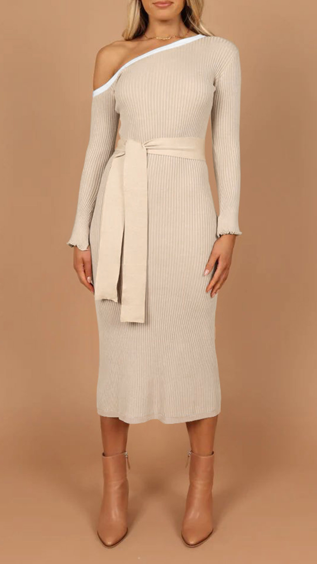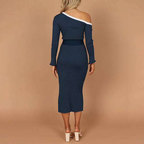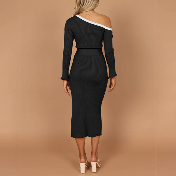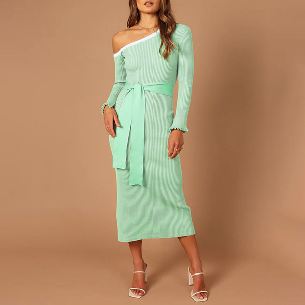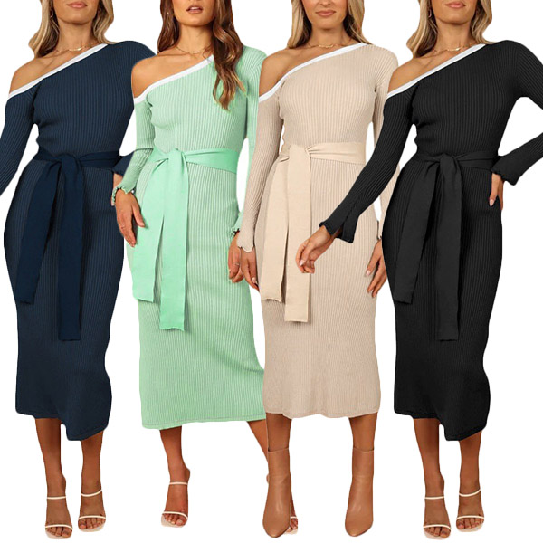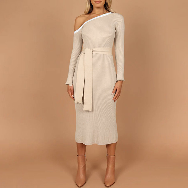 Elegant One-shoulder Long Sleeve Self-tie Bodycon Dress