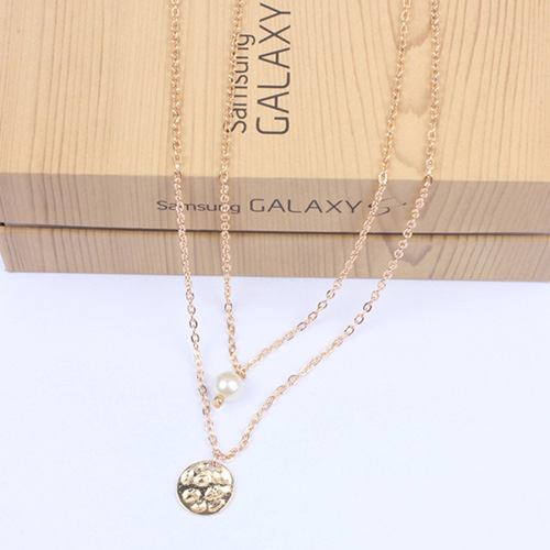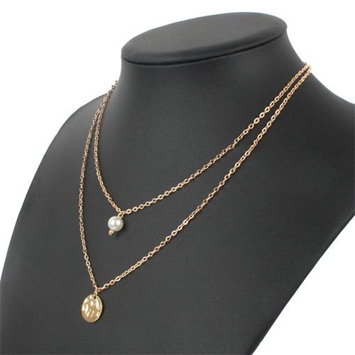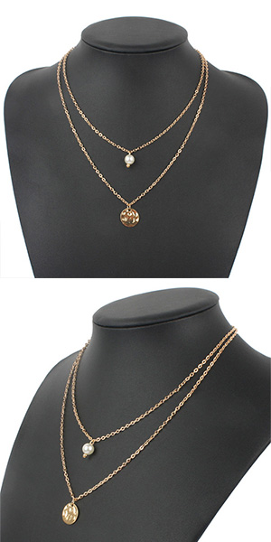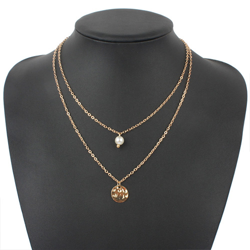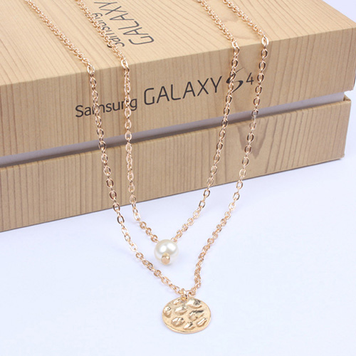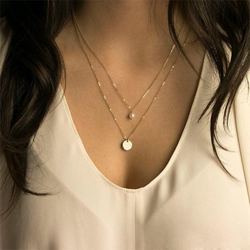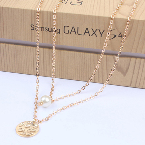 Designed with two layer chain, pearl and gold pendants necklace, elegant and sexy.