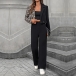 This chic set features a classic plaid pattern that adds a touch of elegance and refinement to your outfit. The crop blazer offers a modern and tailored fit, while the straight-cut pants provide a sleek and polished silhouette. Wear the pieces together for a coordinated and chic look, or mix and match them with other items in your wardrobe for versatile styling options.