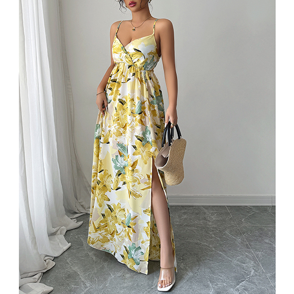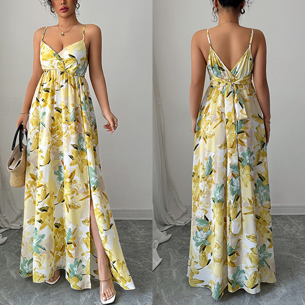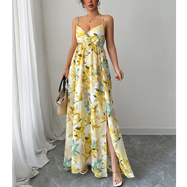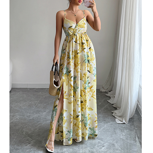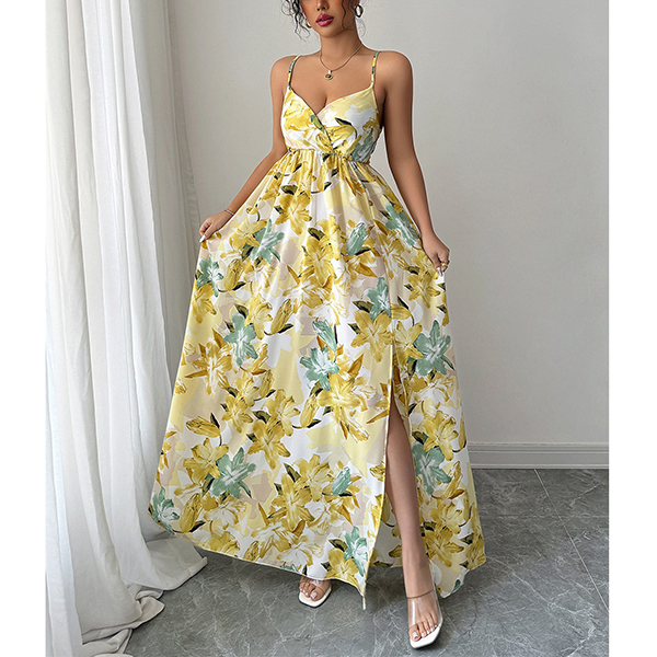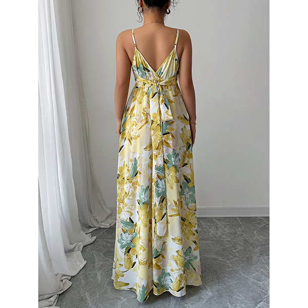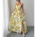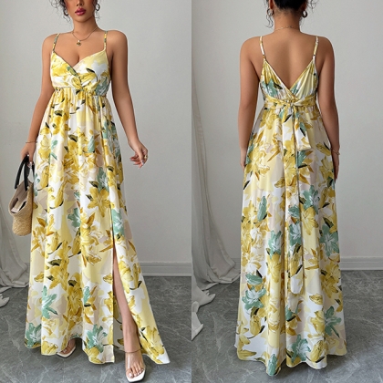 Elegant Printed Suspender Maxi Dress