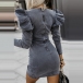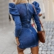 Elegant Puff Long Sleeve V-neck irregular Hemline Bodycon Denim Dress