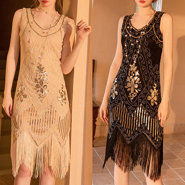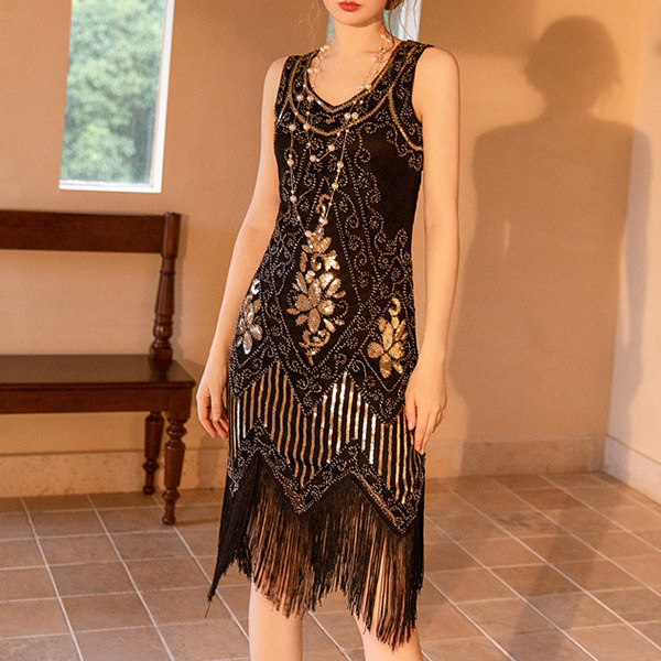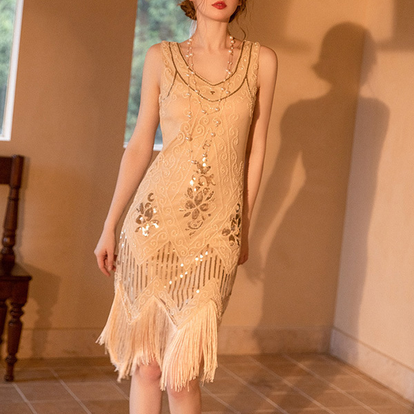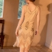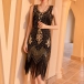Elegant Rhinestone Beaded Tassle Round Neck Sleeveless Bodycon Party Dress