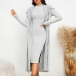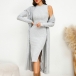This set is designed to bring sophistication and versatility to your wardrobe. The cardigan is crafted from a ribbed fabric, offering a luxurious texture and a flattering fit. The tank dress, also made from ribbed fabric, complements the cardigan perfectly. It has a sleek and form-fitting silhouette, making it a chic choice for any occasion.