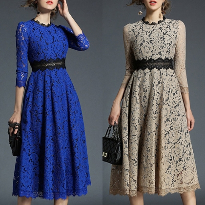 This beautiful and elegant lace dress is perfect for any special occasion. The round neck and 3/4 sleeves make it both stylish and comfortable, while the lace fabric adds a touch of sophistication. Whether you're attending a wedding, a formal event, or a night out on the town, this dress is sure to make you look and feel your best.