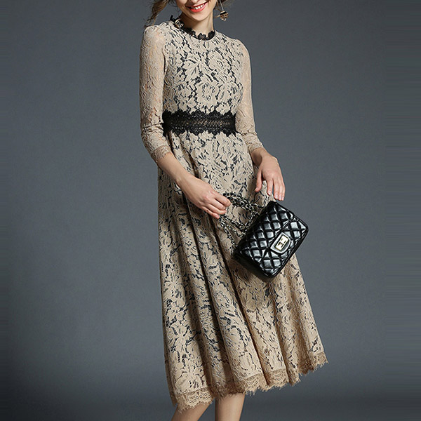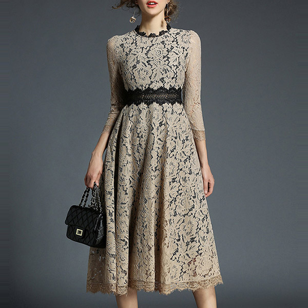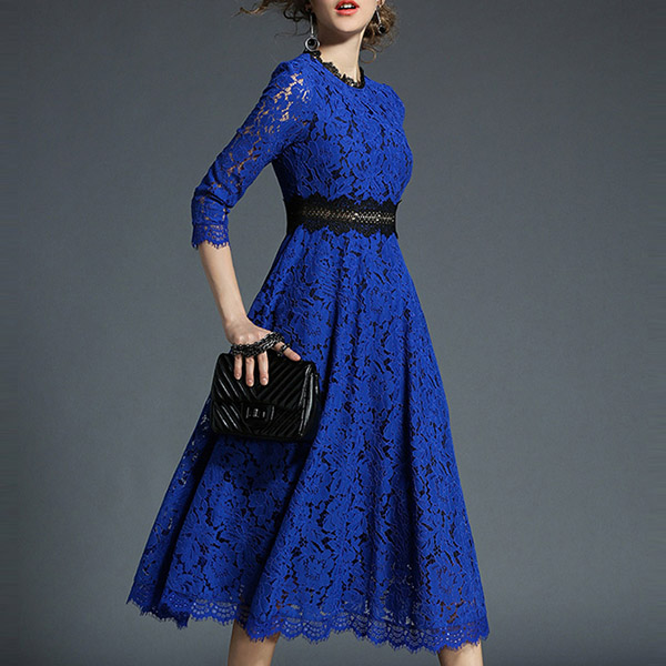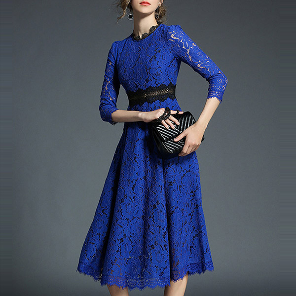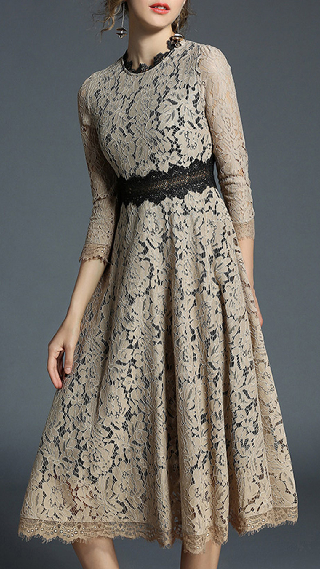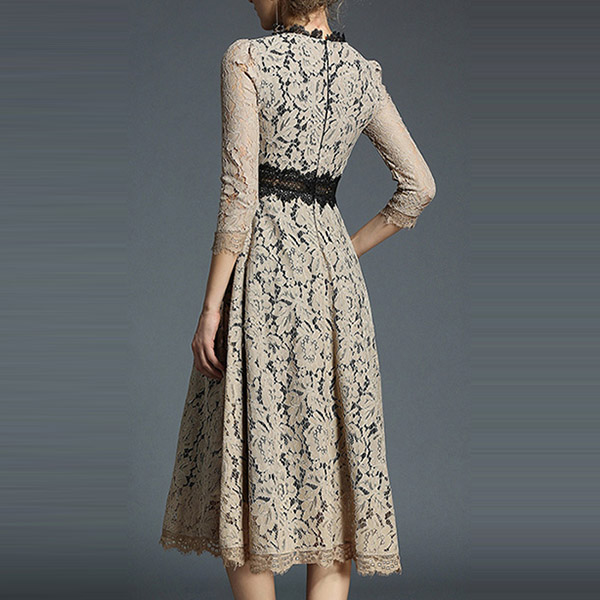 Elegant Round Neck 3/4 Sleeve Lace Dress