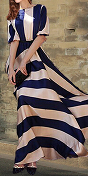 It features round neck, half sleeve and stripes printed design, graceful and generous.