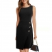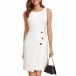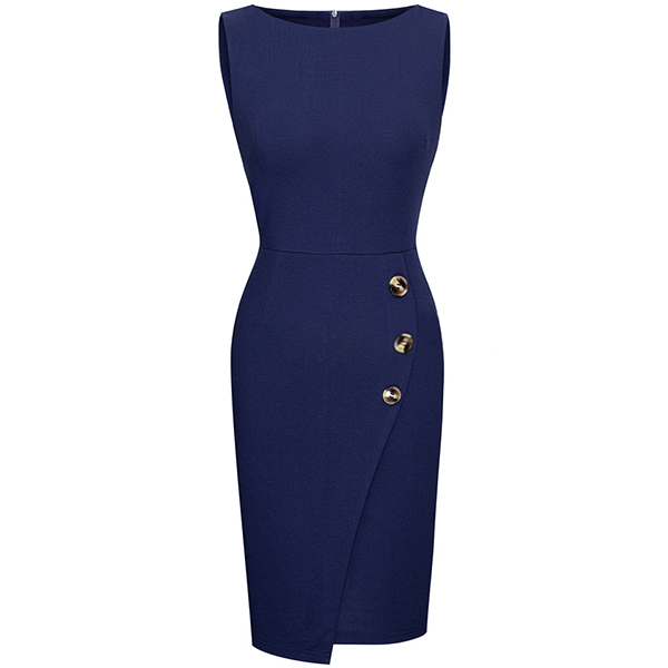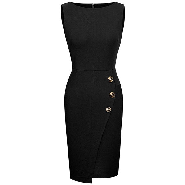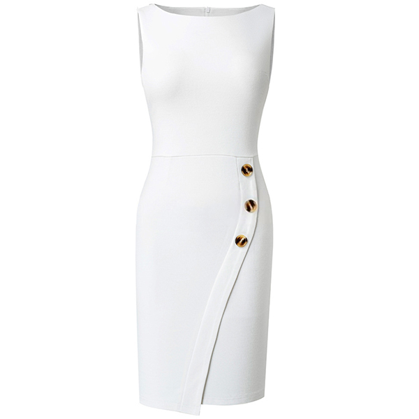 Elegant Round Neck Sleeveless Side Button Irregular Hemline Bodycon Dress