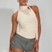 Elegant Self-tie Crew Neck Sleevelss Crop Top