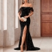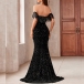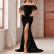 Elegant Sequined Ruffle Off-the-shoulder Slit Maxi Party Dress