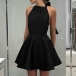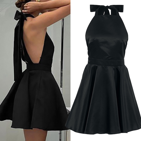 This stunning dress combines an elegant halterneck design with a captivating backless silhouette, creating a perfect balance between sophistication and allure. Complete your elegant and sexy ensemble by pairing this dress with high heels, strappy sandals, or pumps.