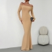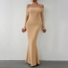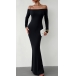 This stunning maxi dress exudes elegance and allure. With its solid color design, it creates a sleek and sophisticated look. The dress features a form-fitting bodycon silhouette with an off-the-shoulder neckline that showcases your shoulders in a sexy and feminine way. Whether you're attending a formal event or a special evening out, this dress is the perfect choice for a chic and captivating look.