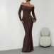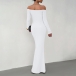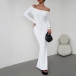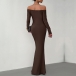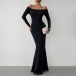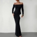 Elegant Sexy Solid Color Off-the-shoulder Long Sleeve Bodycon Maxi Dress