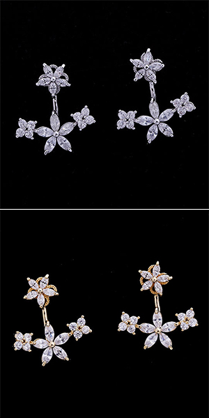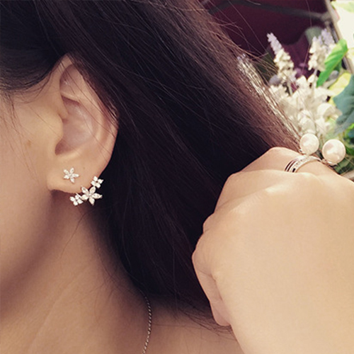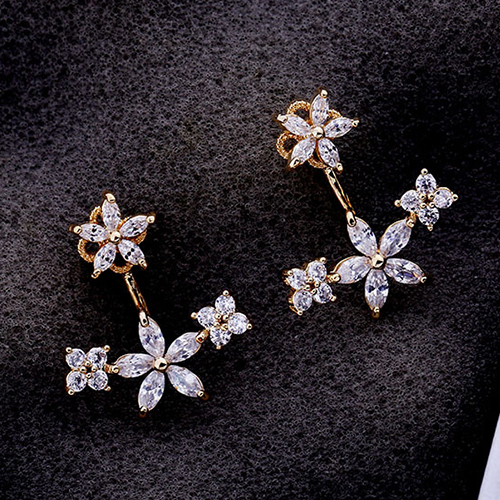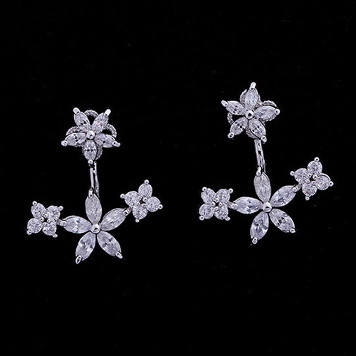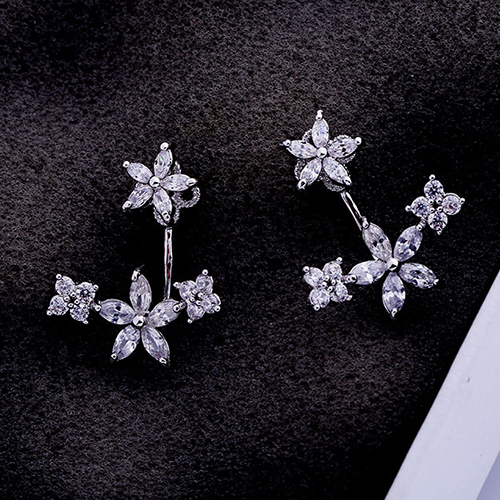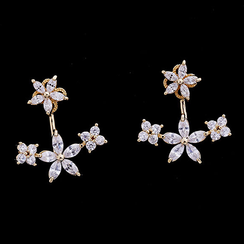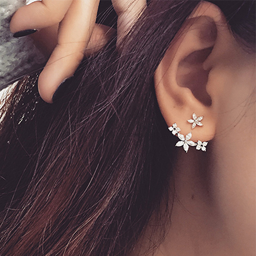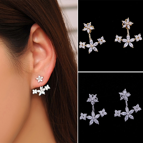Elegant Simple Zircon Flower Shaped Backear Stud Earring