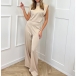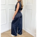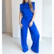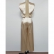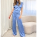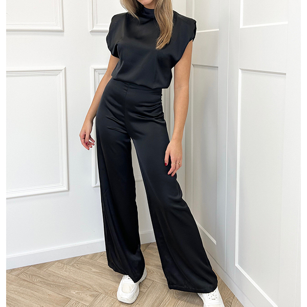 Make an unforgettable entrance with this show-stopping satin jumpsuit. The front features a chic high neckline and structured shoulders for a powerful, tailored look, while the back reveals a daring, plunging open design. Perfect for cocktail parties, weddings, or any event where you want to stand out.