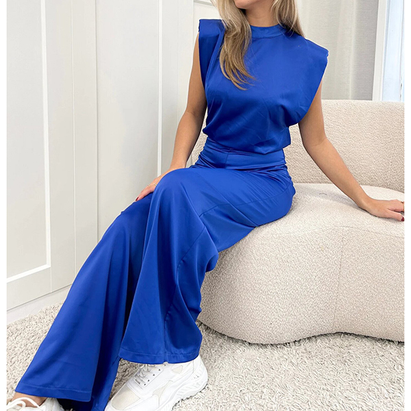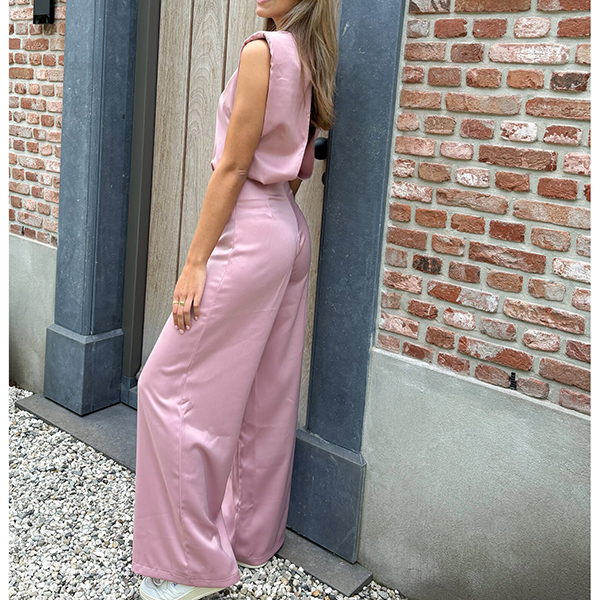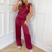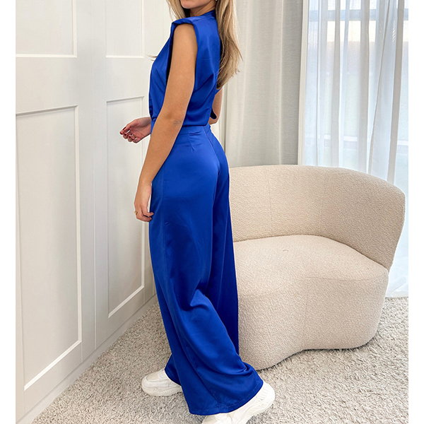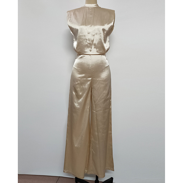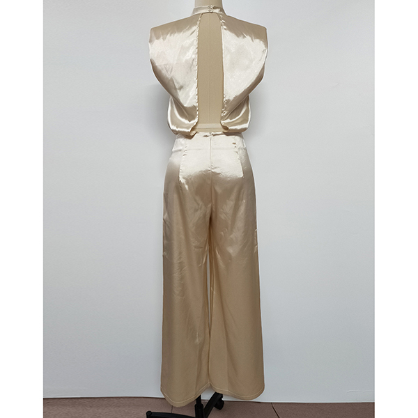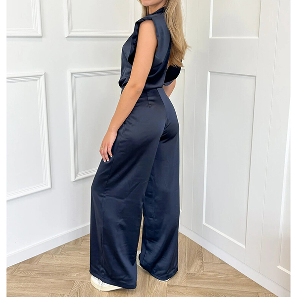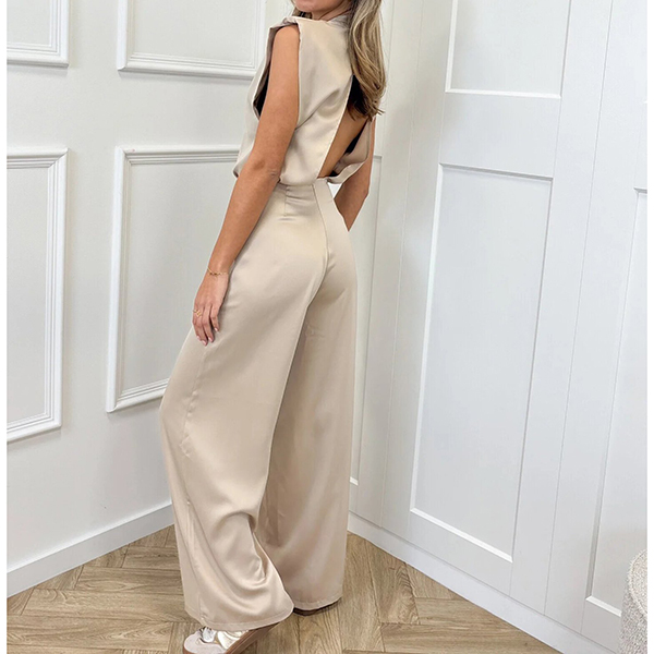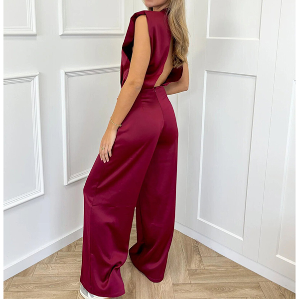 Elegant Sleeveless Open Back Wide Leg Satin Jumpsuit