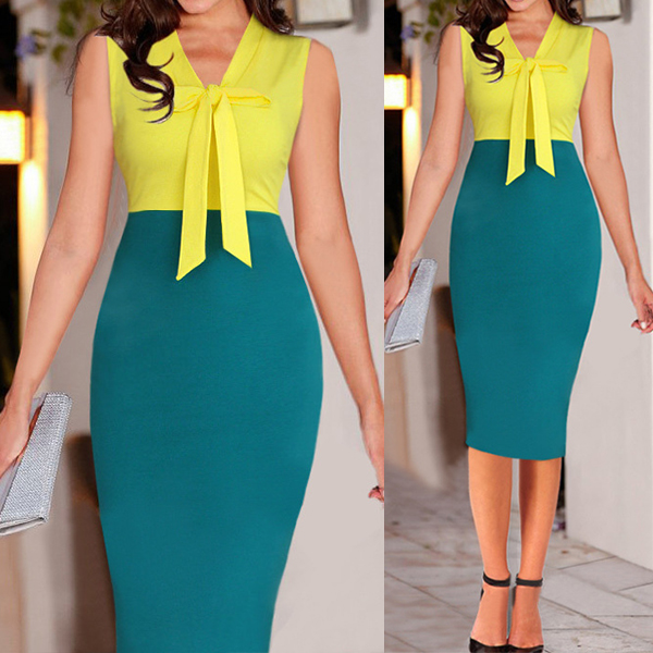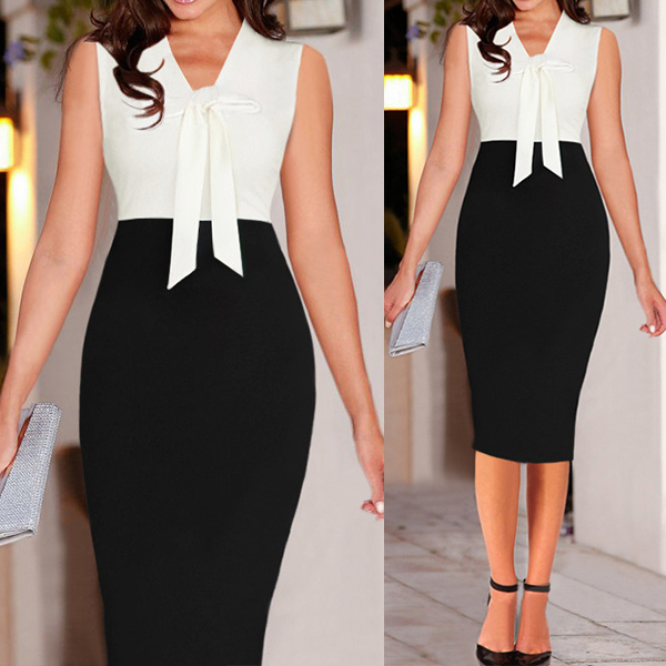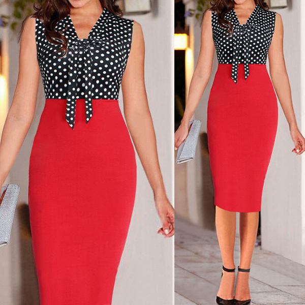When stepping into the office with this pencil dress,you will receive their envious eyes! Designed with sleeveless,