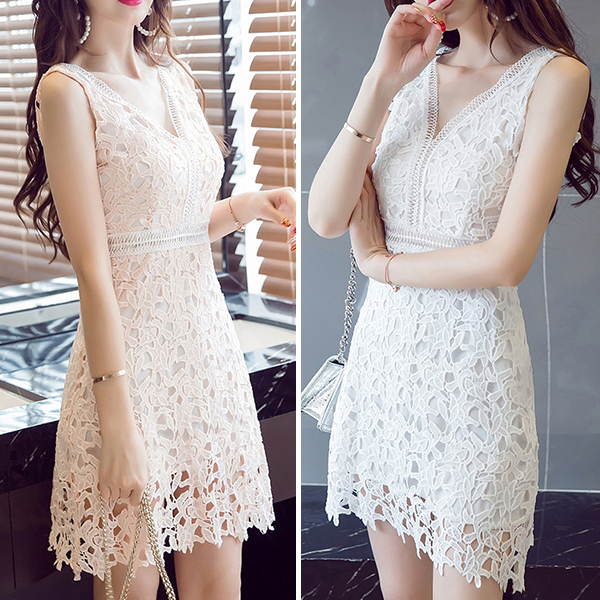 Your elegant temperament and charming femininity will blossom in this delicate dress. Hollow out lace crochet spliced style,