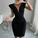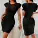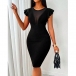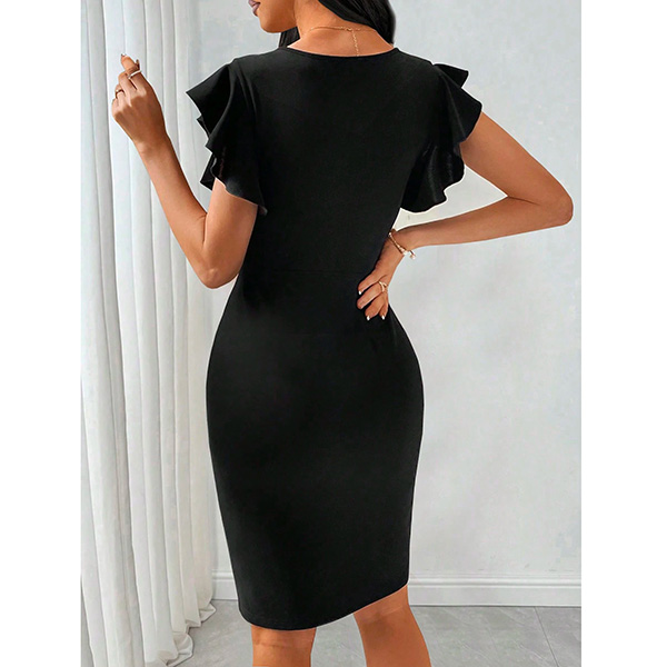 Elegant Slim Fit Solid Color Round Neck Design Dress