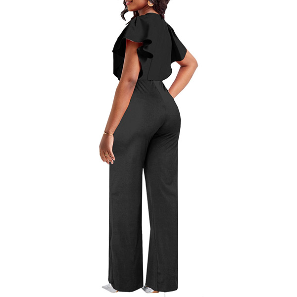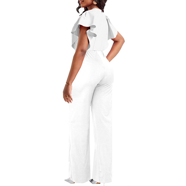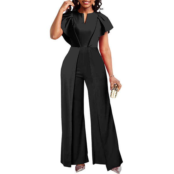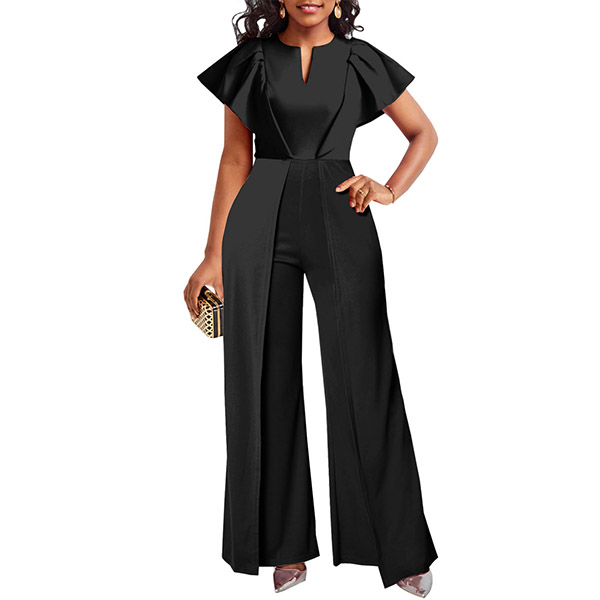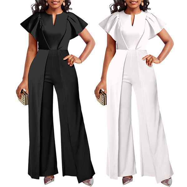 Elegant Slit V-neck Cap Sleeve Wide-leg Jumpsuit