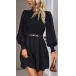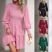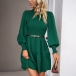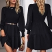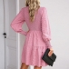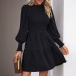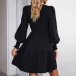 Elegant Smocked Round Neck Long Sleeve Mini Dress