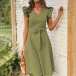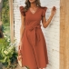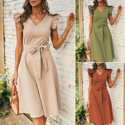 If you are looking for an elegant and delicate dress for your working days or weekend out,then look no further than this piece. Solid color style,the v-neck and ruffle cuff design will lend you some feminine and flirty vibes,while the a-line silhouette and lace-up design at the waist part will better showcase your figure. So why not atke interest in this piece?