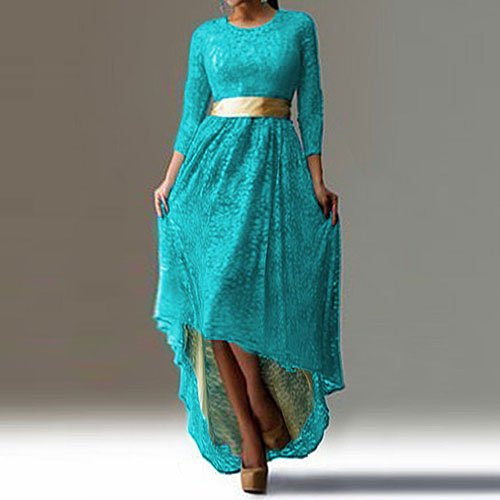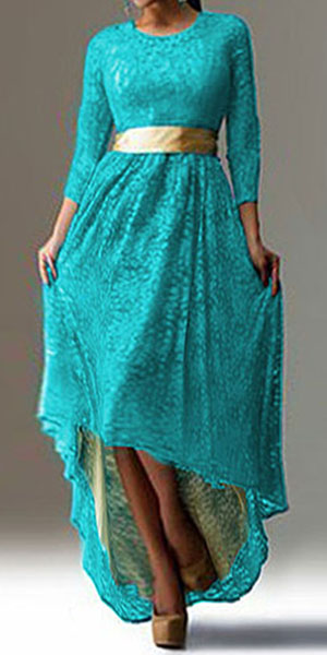 Designed with 3/4 sleeve,round neckline and high-low hem,this undoubtedly feminine piece