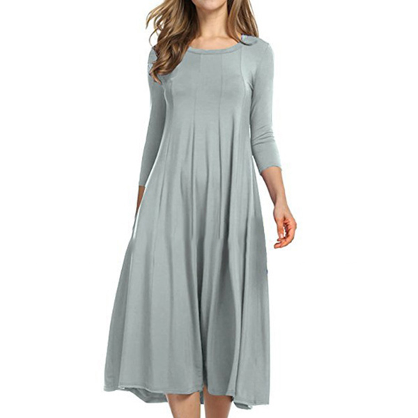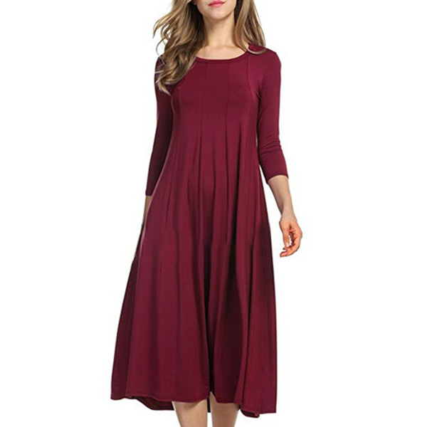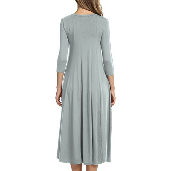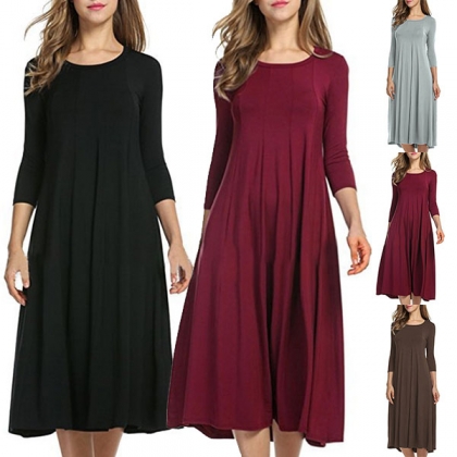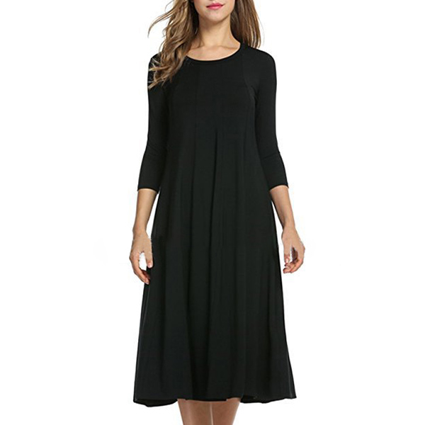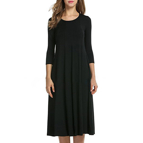 Coming with a solid color,finished with 3/4 sleeve and round neck design,this dress bears a simple design style,but it knows how to portray your elegant and charming image. This versatile dress is both fit for your workdays and casual weekends. So why not buy one?
