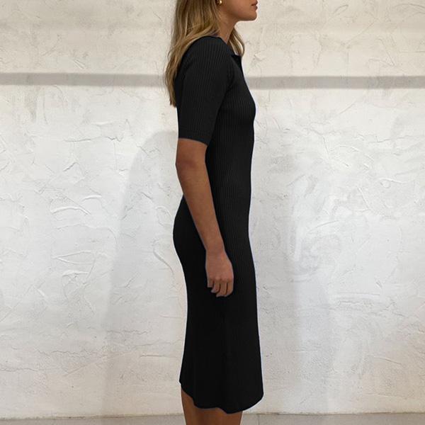 The dress is made of a soft and stretchy ribbed material that is comfortable to wear and hugs your curves. The stand collar and short sleeves add a chic touch while the solid color makes it easy to style with any accessories. The buttons and the bodycon fit make this dress look sophisticated and stylish. Wanna have one?