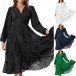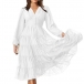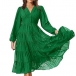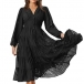 Elegant Solid Color Buttoned V-neck Long Sleeve Pleated Tiered Dress