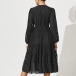 Featuring a buttoned V-neckline and long sleeves, this dress exudes a chic and sophisticated vibe. The pleated tiered detailing adds a touch of elegance and creates a flowy and feminine silhouette. Pair it with heels and minimal accessories to let the dress shine.