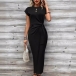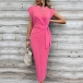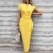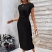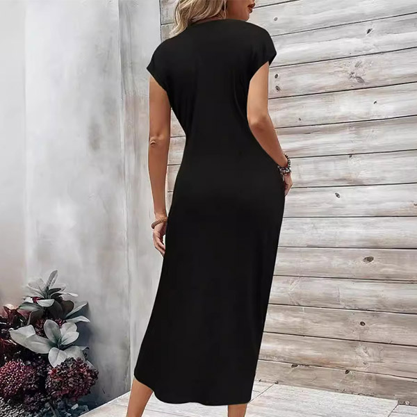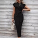 Elegant Solid Color Crew Neck Cap Sleeve Ruched Bodycon Dress