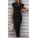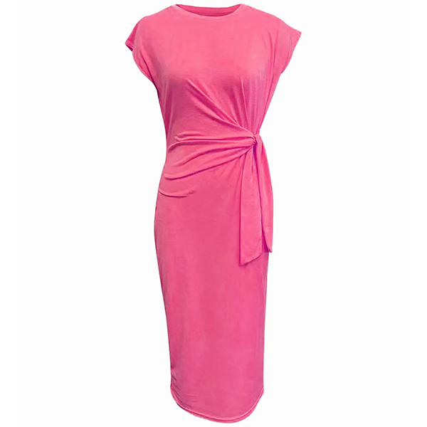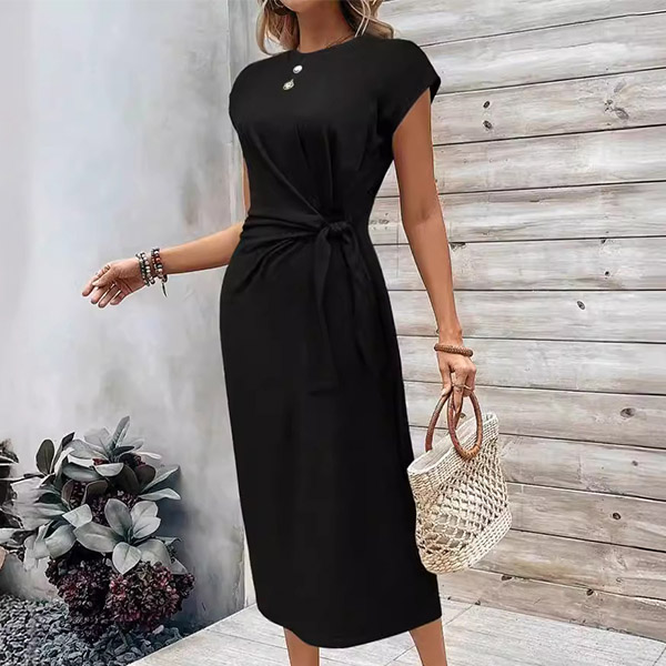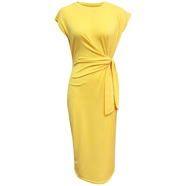 This elegant bodycon dress features a crew neckline, cap sleeves, and side ruched detailing, creating a sophisticated and chic look. Multi-colors available.