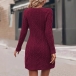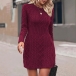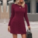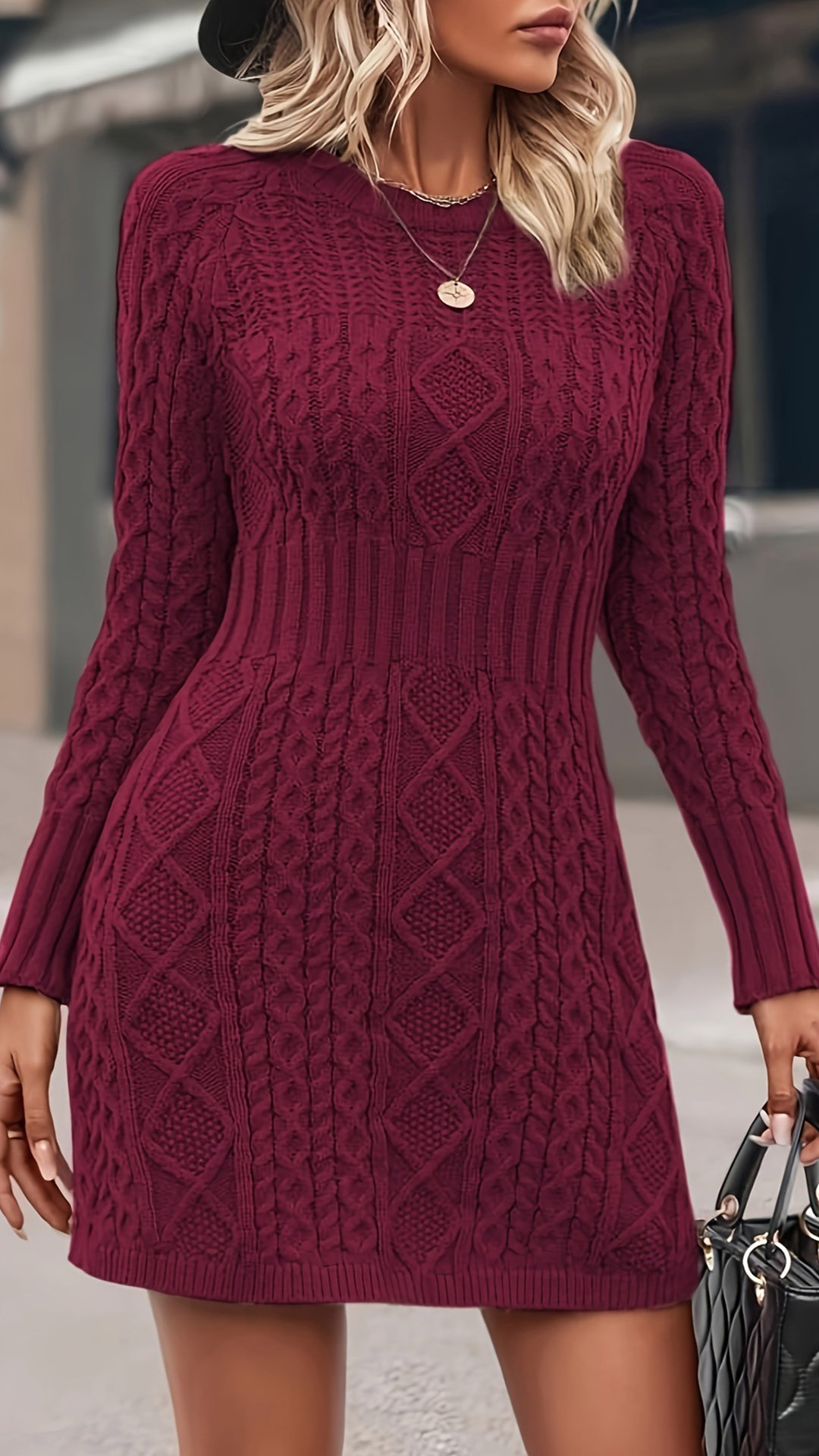 Elegant Solid Color Crew Neck Long Sleeve Cable Pattern Sweater Dress