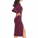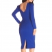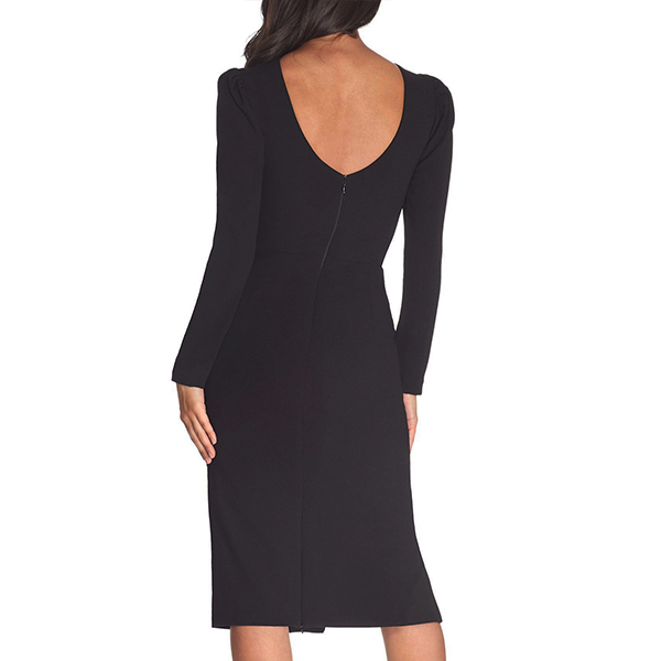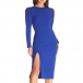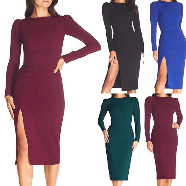 This bodycon dress features crew neck, long sleeve and side slit design, a perfect choice for working wear.