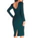 Elegant Solid Color Crew Neck Long Sleeve Side Slit Bodycon Dress